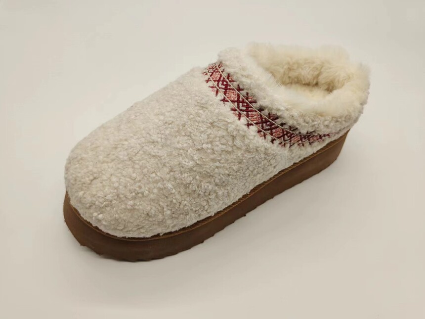 Faux fur collar binding slippers