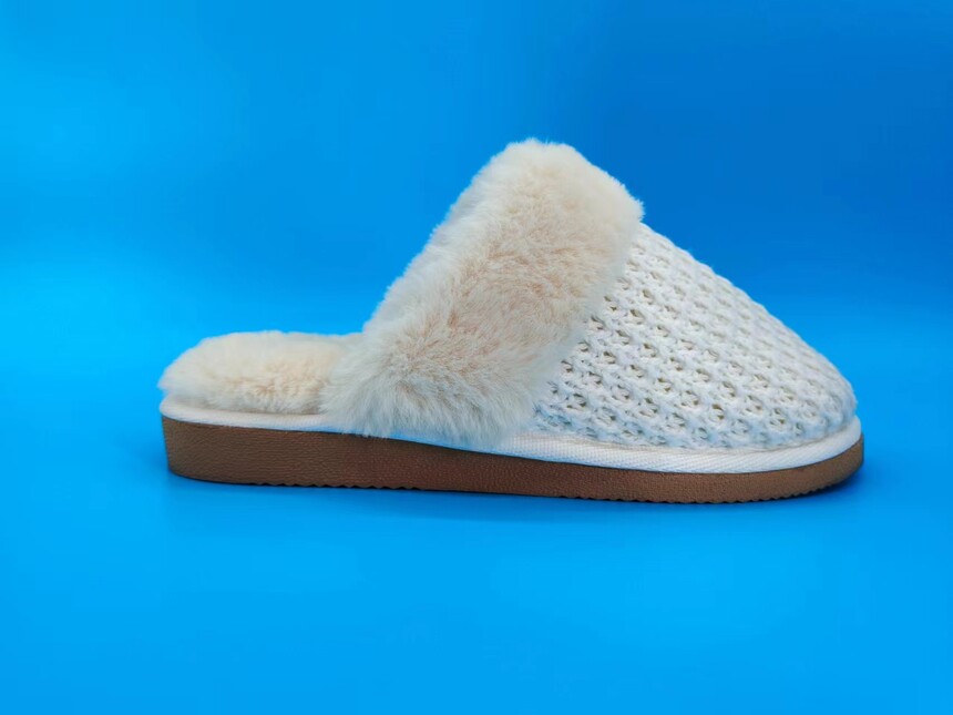 Faux fur collar binding slippers